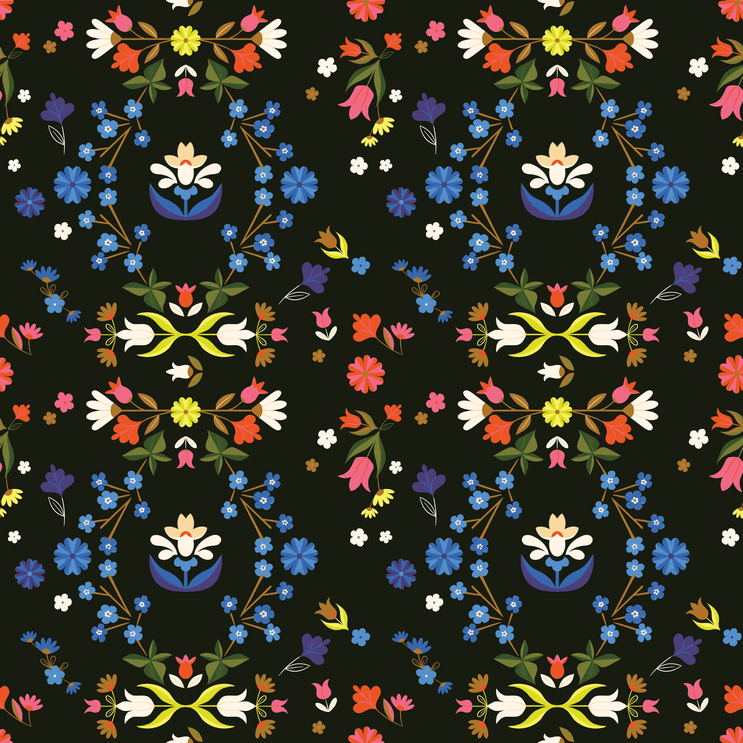 Repeating pattern designs created in Illustrator & Photoshop. Used in packaging, products, and digital advertising. Utilizing the brand’s folk art motifs, bold sense of color, and whimsicality.